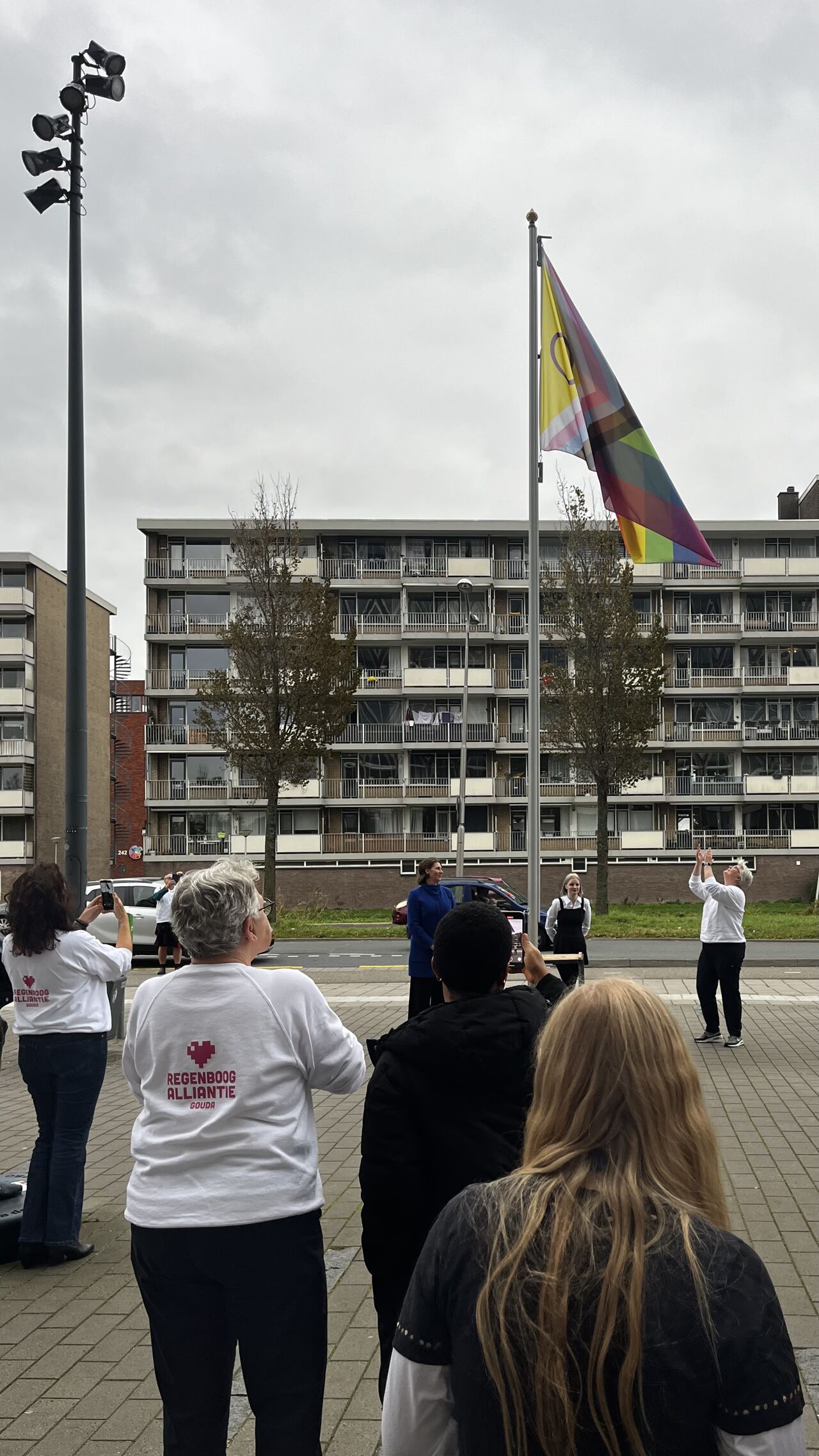 Extra mooi is de hernieuwde aanwezigheid van niet één, maar twee GSA’s, waardoor ook jongeren hun stem laten horen. Het vlaghijs-moment maakt onderdeel uit van Oktober Regenboogmaand Gouda 2025: een maand vol activiteiten rondom diversiteit, inclusie, ontmoeting en plezier. Iedereen is welkom om aan te haken bij de activiteit van zijn/haar/hun keuze; bekijk het programma via de agenda op onze website en doe mee aan de Regenboogmonitor. Dank aan alle aanwezigen, aan onze partners in de stad, aan de leerlingen die erbij waren en aan de Gemeente Gouda voor de blijvende samenwerking.